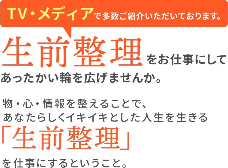 生前整理の素晴らしさと多くの方に広めてたくさんの人を幸せにしましょう。